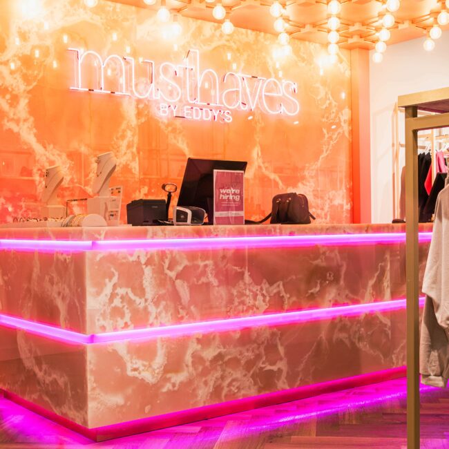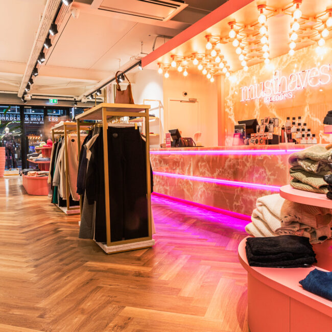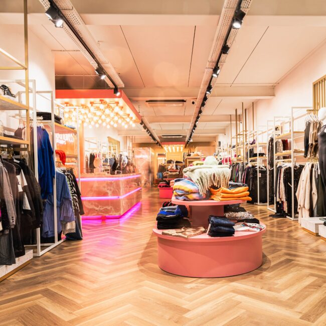 Eddy's is een brandstore voor exclusieve merken. Wij hebben zowel de brandstore, lunchroom & het pand van Musthaves voorzien van zowel een pvc visgraat als gietvloer.